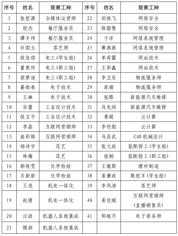 烟台职业学院2025年度烟台市技术能手名单
