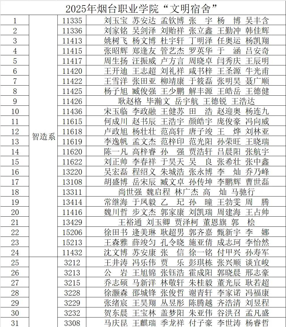 为深入贯彻落实立德树人根本任务,进一步加强学生宿舍文明建设,营造整洁、文明、和谐、安全的学习与生活环境,增强学生自我管理、自我服务、自我教育、自我监督的意识,推动校园精神文明建设,烟台职业学院于2025年11月至12月组织开展了“一站式”学生社区“文明宿舍”创建评选活动。