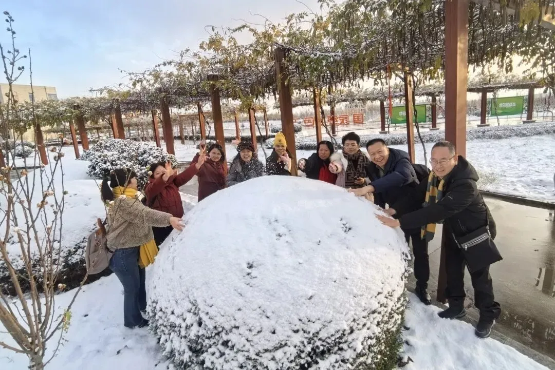 活动首日,烟台迎来今冬初雪。风雪并未阻挡参观的步伐,反而映衬出基地团队的凝聚力与担当!为保障参观安全有序,基地后勤保障人员一早便冒着风雪清扫道路,令人感动的是,多位新时代家人也主动加入扫雪队伍,共同为参观之旅护航!