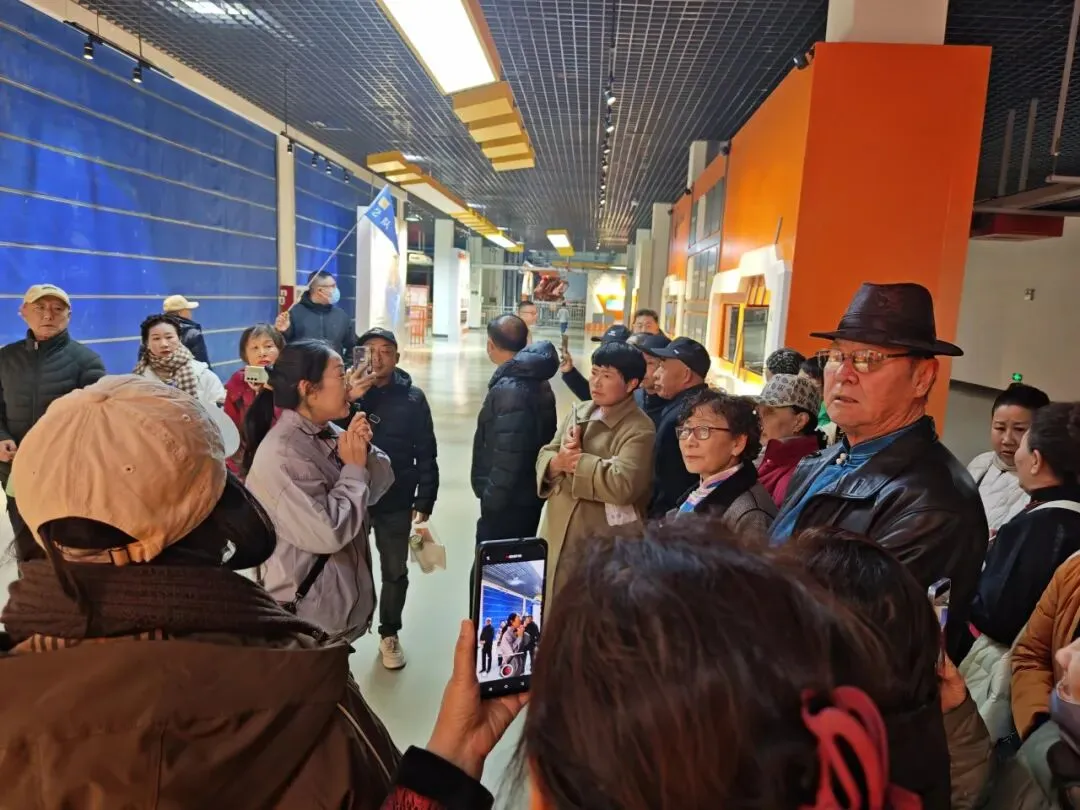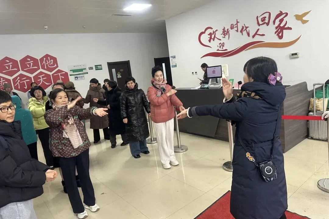 与此同时,由党员组成的服务团队迅速集结,科学划分参观批次。为缓解等待时间,讲解员带领大家在宿舍大厅开展健康舒展操,活跃气氛、拉近距离。
