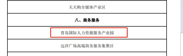 经区市推荐、专家评审、现场核查等环节,确定22个项目入选青岛市2021年度市级现代服务业集聚区,其中,青岛国际人力资源服务产业园成功入选。
