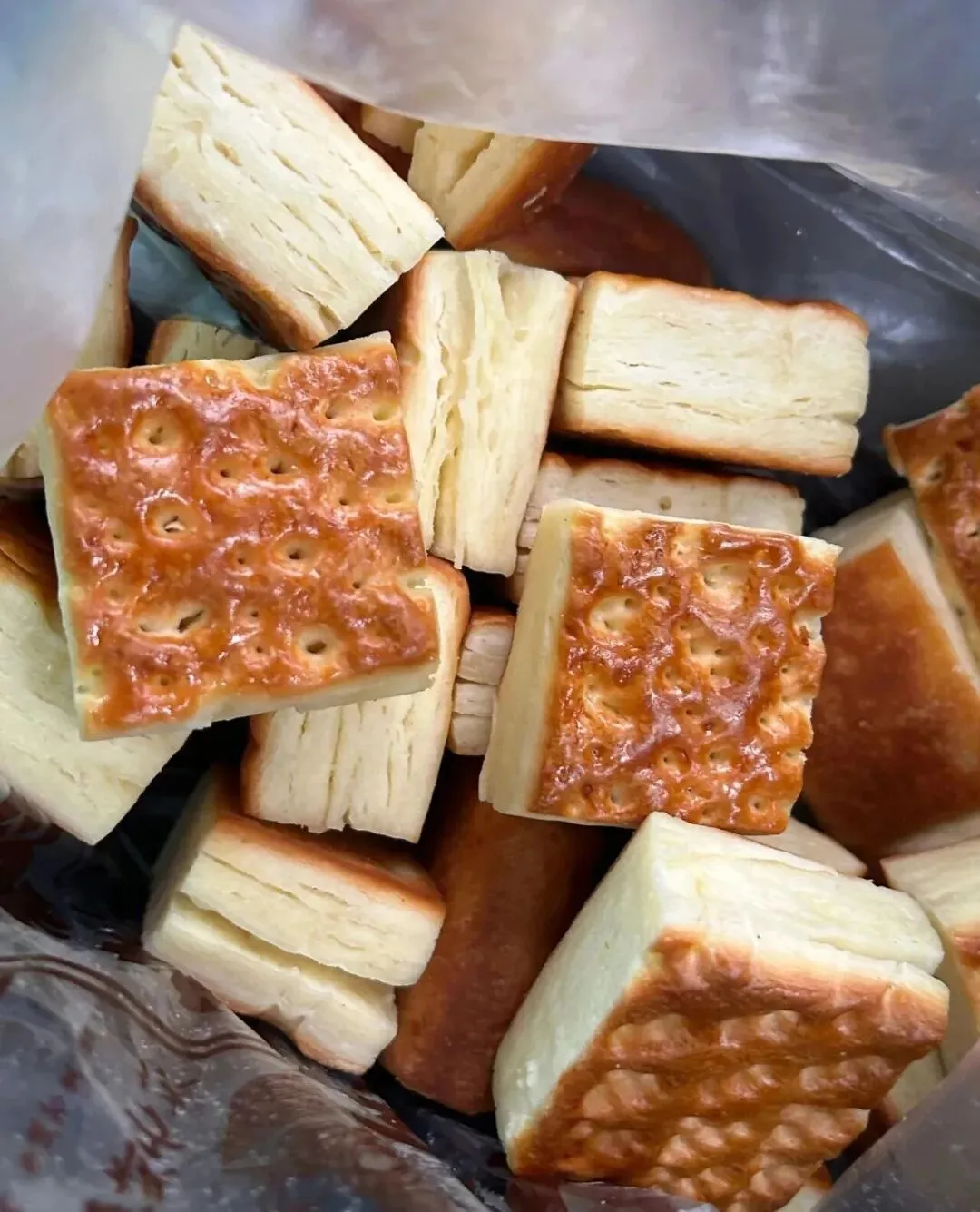 入口有奶香味,就有点像奶香小馒头的感觉,是自然甜味但越嚼越香,刚烤出来的时候外皮还酥酥的,中间的结构有点像千层饼,嚼起来挺劲道,越吃越好吃。