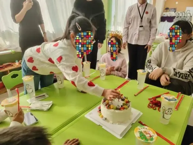 我们的育苗心灵家园行程里藏着一份特别的惊喜——给刘梅过生日。早上,我们很早就起床了,通过生命承诺的引领,我们开始了第一天的行程。到了育苗心灵家园门口,我们见到了赶来的刘梓暄和曲航怡妹妹,在教室里,彭老师让我们先自主学习数学,不一会儿,赵娟老师来了,坐下来给我们辅导数学,其他的志愿者老师们也分别坐在小妹妹们的身旁辅导。她们用手指着题目,放慢语速耐心地给我们讲解。中午,高俊凤园长阿姨买来了大蛋糕,点上了蜡烛,大家围坐成一圈,烛光摇曳中映着刘梅惊喜的笑脸,我们一起齐声唱着生日歌,歌声里满是真挚的祝福,这一刻,大家都被香甜的蛋糕和真挚的祝福所包围。而这场突如其来的生日会,更让我懂得,公益从来不是单向的付出,那些欢声笑语里的双向奔赴,才是最珍贵的馈赠。