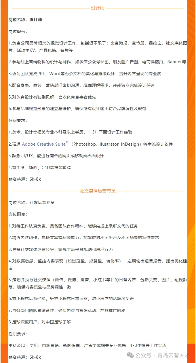 >青岛海牛足球俱乐部招聘公告