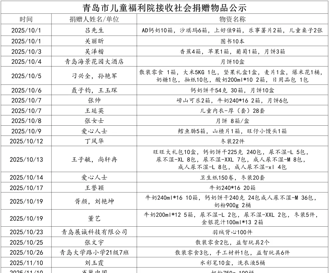 附件:青岛市儿童福利院接收社会捐赠物品公示