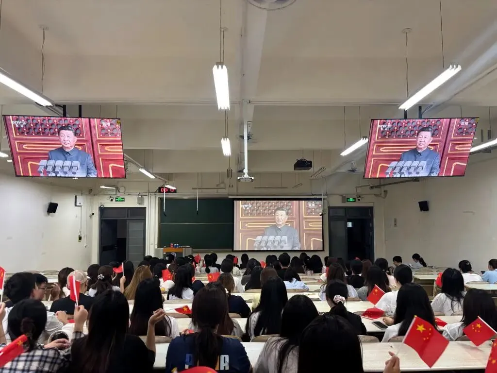 师生观看纪念中国人民抗日战争暨世界反法西斯战争胜利80周年大会