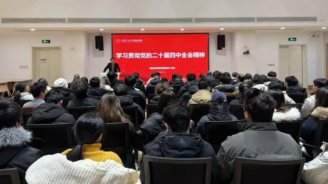 院党委书记李升平围绕党的二十届四中全会精神作专题党课,他从全会召开的时代背景切入,系统阐述了党的二十届四中全会的重大意义,解读了“十五五”时期经济社会发展的指导方针、主要目标和实践要求。他强调,党的二十届四中全会是我国迈向基本实现社会主义现代化关键阶段的重要会议,全会通过的《中共中央关于制定国民经济和社会发展第十五个五年规划和二〇三五年远景目标的建议》是指导未来五年发展的纲领性文件,全体师生要深刻领会核心要义,自觉将全会精神融入教学科研、人才培养全过程。