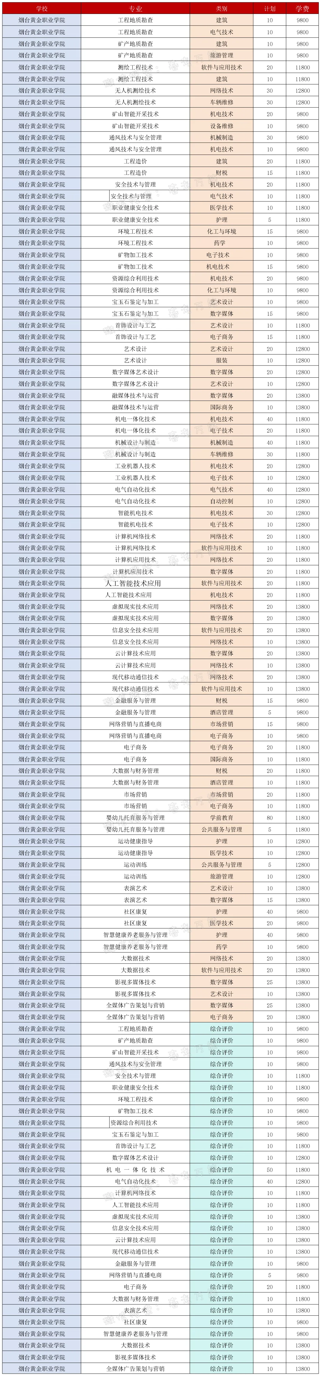 >烟台黄金职业学院2026单招、综评招生计划