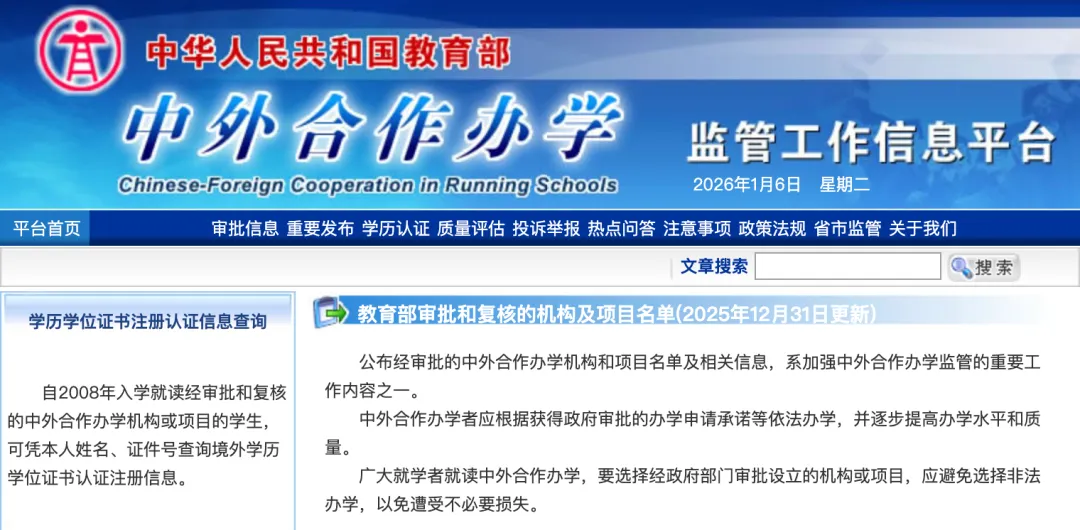 近日,教育部公布了最新一批中外合作办学机构和项目审批结果。