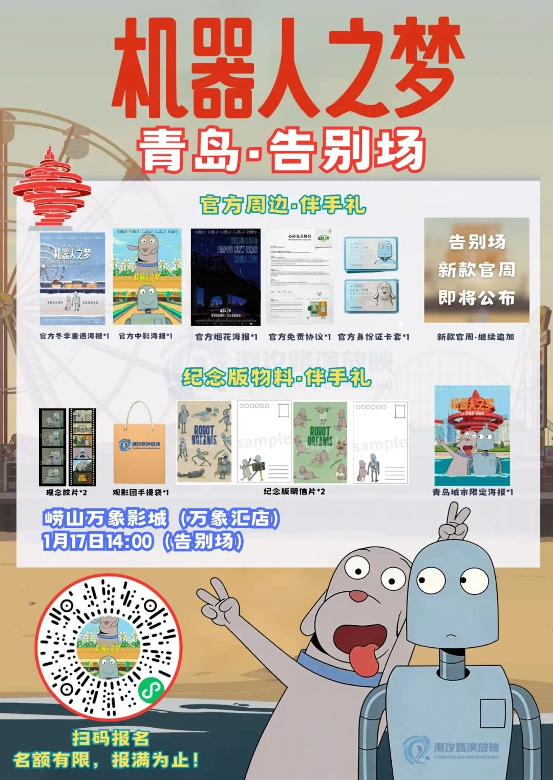 2026年1月3日,央视频特别呈现开年治愈场《机器人之梦》已经在北京举行。2025年12月31日,潮汐路演放映在青岛崂山举行了跨年特别场,2026年1月17日, 我们潮汐路演放映观影团将在青岛举行“最后一舞·告别场”,邀你再度走进一场无声的相遇。