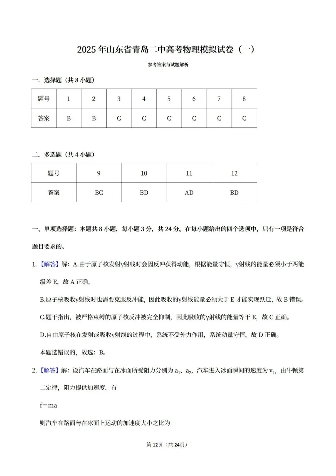 2025年山东省青岛二中高考物理模拟试卷(一);