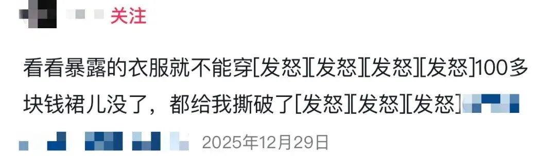比如,有女生拍下自己老公撕碎自己连衣裙的画面,就因为老公觉得有点暴露就故意撕坏,不让她穿。