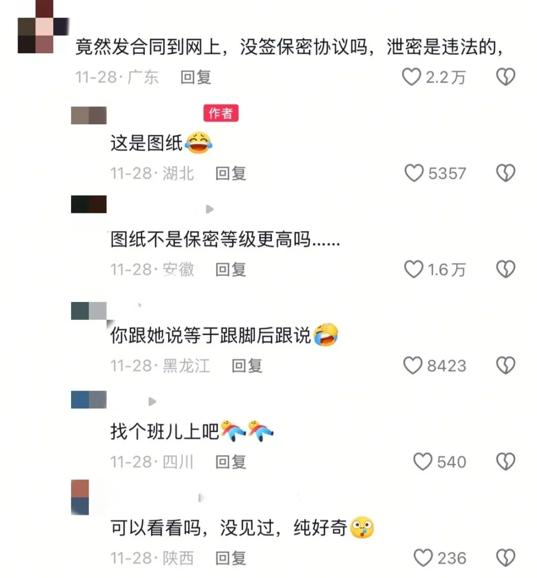 评论区都在苦口婆心地跟她科普,这种文件一般都有签保密协议,这样发上来不坑惨了自己老公吗。