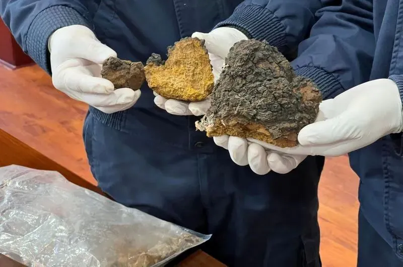 图为:海关关员查获的桦树茸