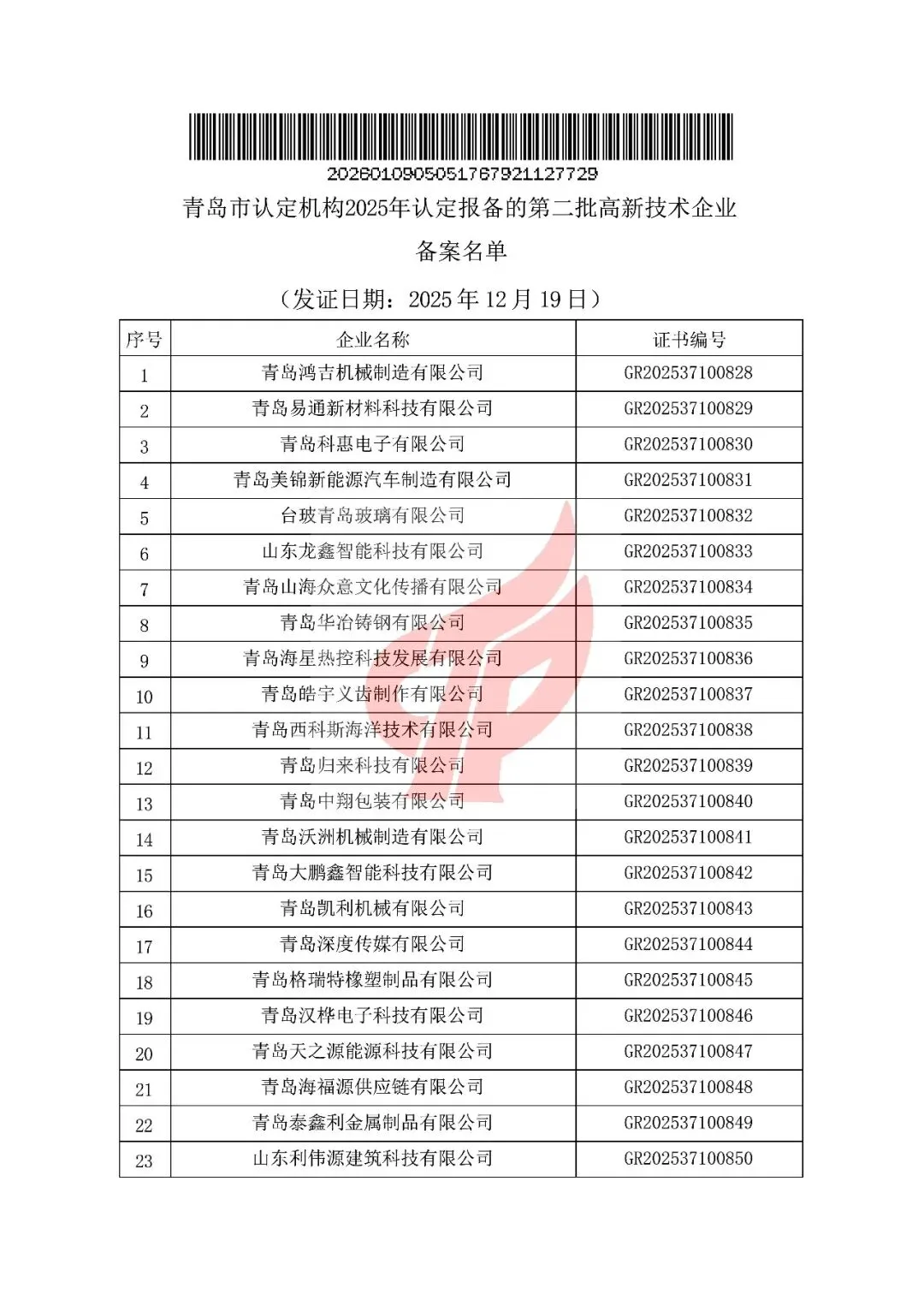 附件:青岛市认定机构2025年认定报备的第二批高新技术企业备案名单