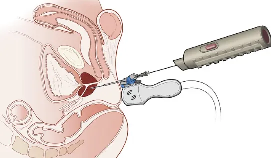 经直肠超声引导下前列腺穿刺活检示意图