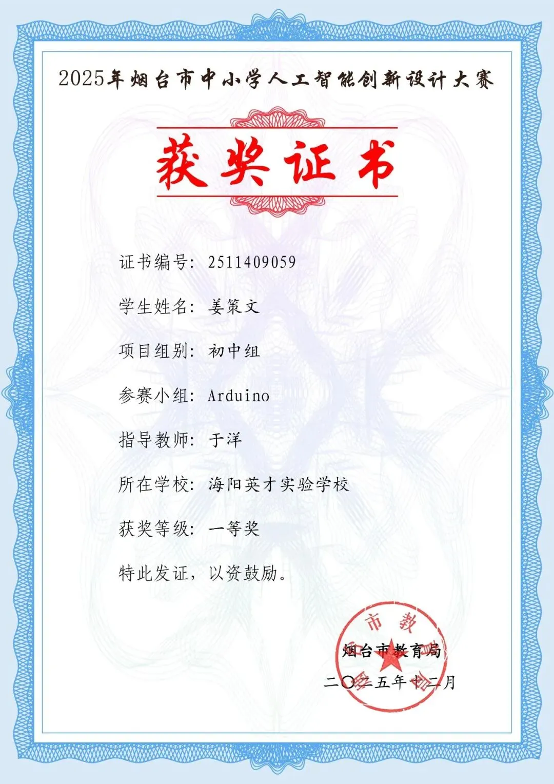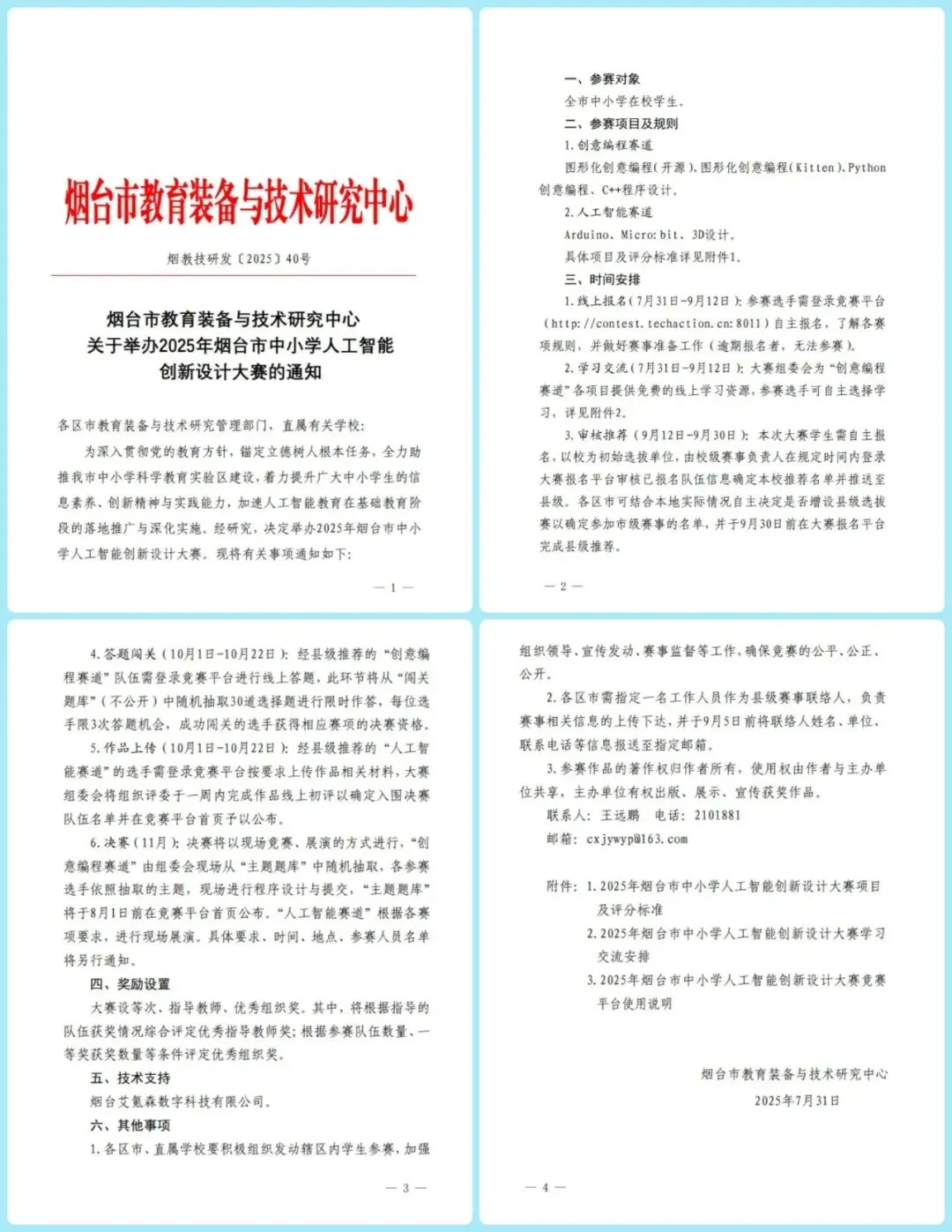 近日,2025年烟台市中小学人工智能创新设计大赛决赛圆满落幕。