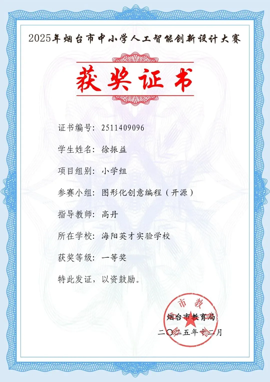 【喜报】我校在向未来的学员闪耀烟台AI创新大赛,70人获奖,占海阳参赛学员总数的63%