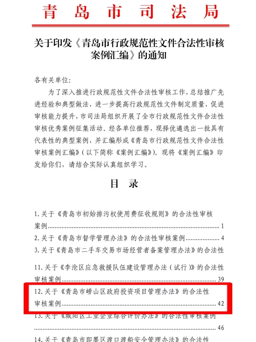 喜报 | 我区案例成功入选《青岛市行政规范性文件合法性审核案例汇编》