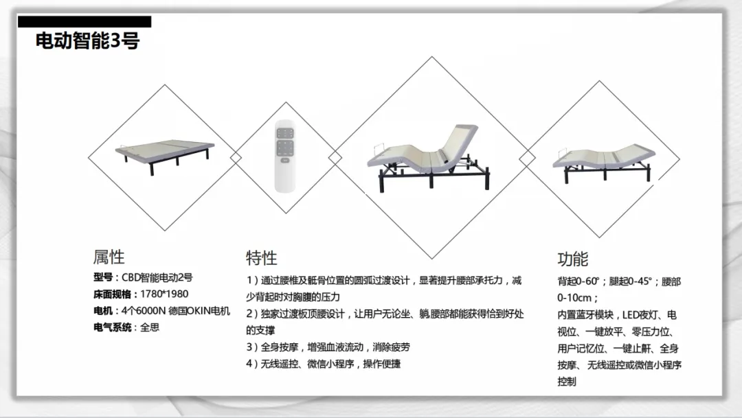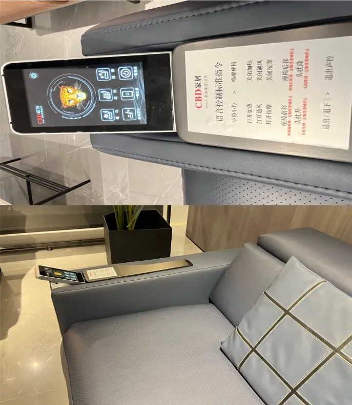 ◇ 不是所有功能产品都能称之为智能,CBD沙发采用的是顶级豪车座椅模式,是目前民用家具行业里面最先进的智能产品,每套沙发都可以进行加热,通风,按摩,听音乐,而且功能可以自由选配,跟买车是一样的。操控起来非常便捷,两种操控模式(液晶屏+语音),非常科学。