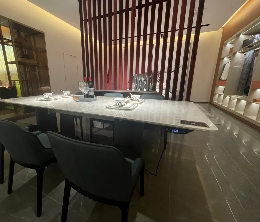 ◇ 目前民用家具行业最先进技术产品—石墨烯餐桌,桌面可加热恒温,最高温度60度,可自由调节,长时间用餐不再担心菜品变冷。