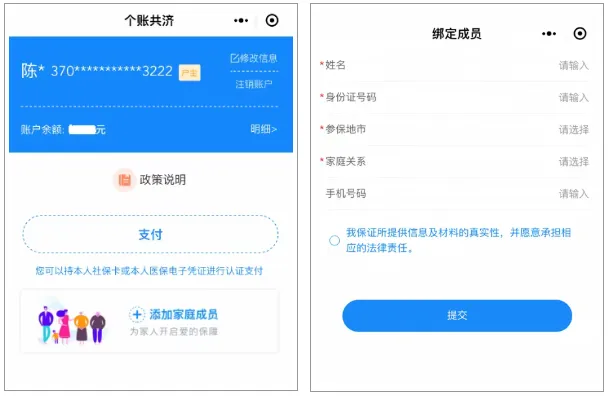 点击“添加家庭成员”,正确填写信息,绑定家庭成员。