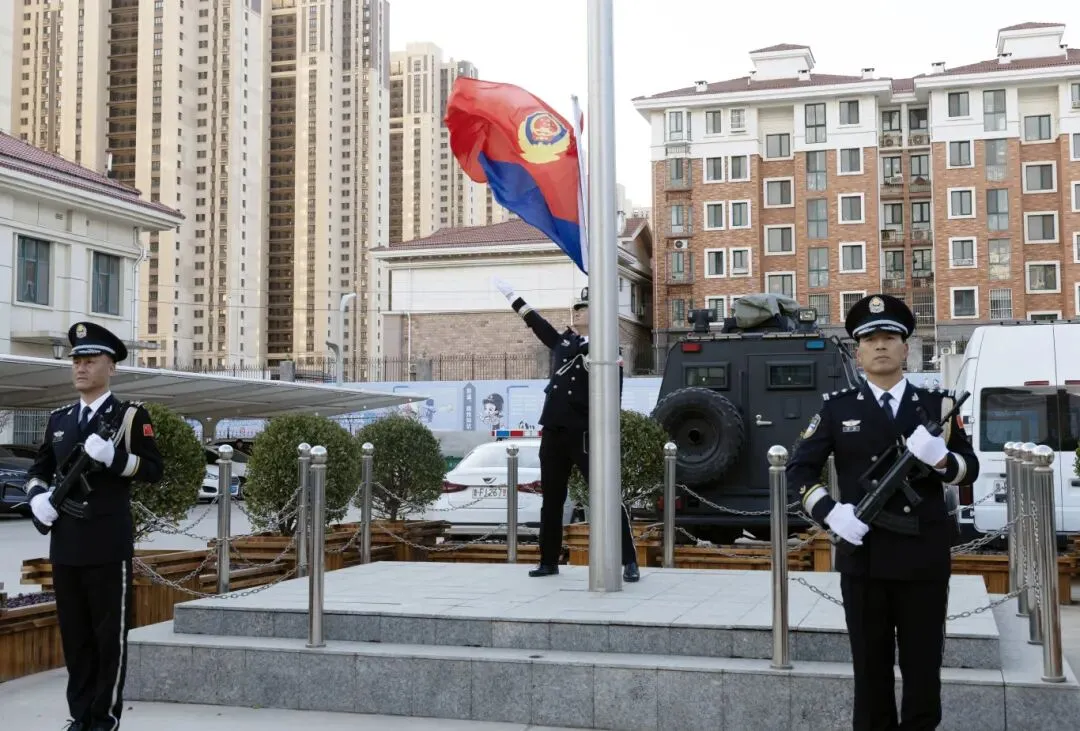 为庆祝第六个中国人民警察节,不断凝聚奋进力量、筑牢忠诚警魂,1月10日上午,烟台市公安局高新分局庄重举行升警旗仪式。区公安分局党委书记、局长刘强出席仪式并讲话,党委副书记、政委潘春山主持仪式,党委班子成员和除值班执勤外的全体民辅警参加仪式。