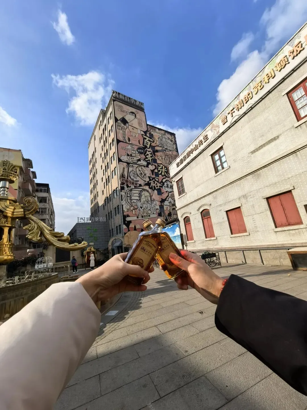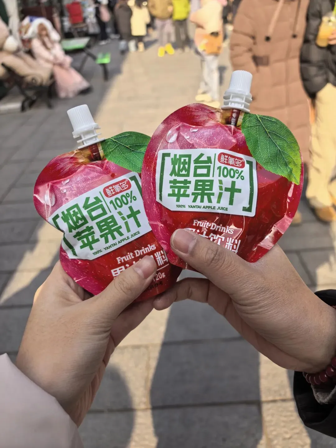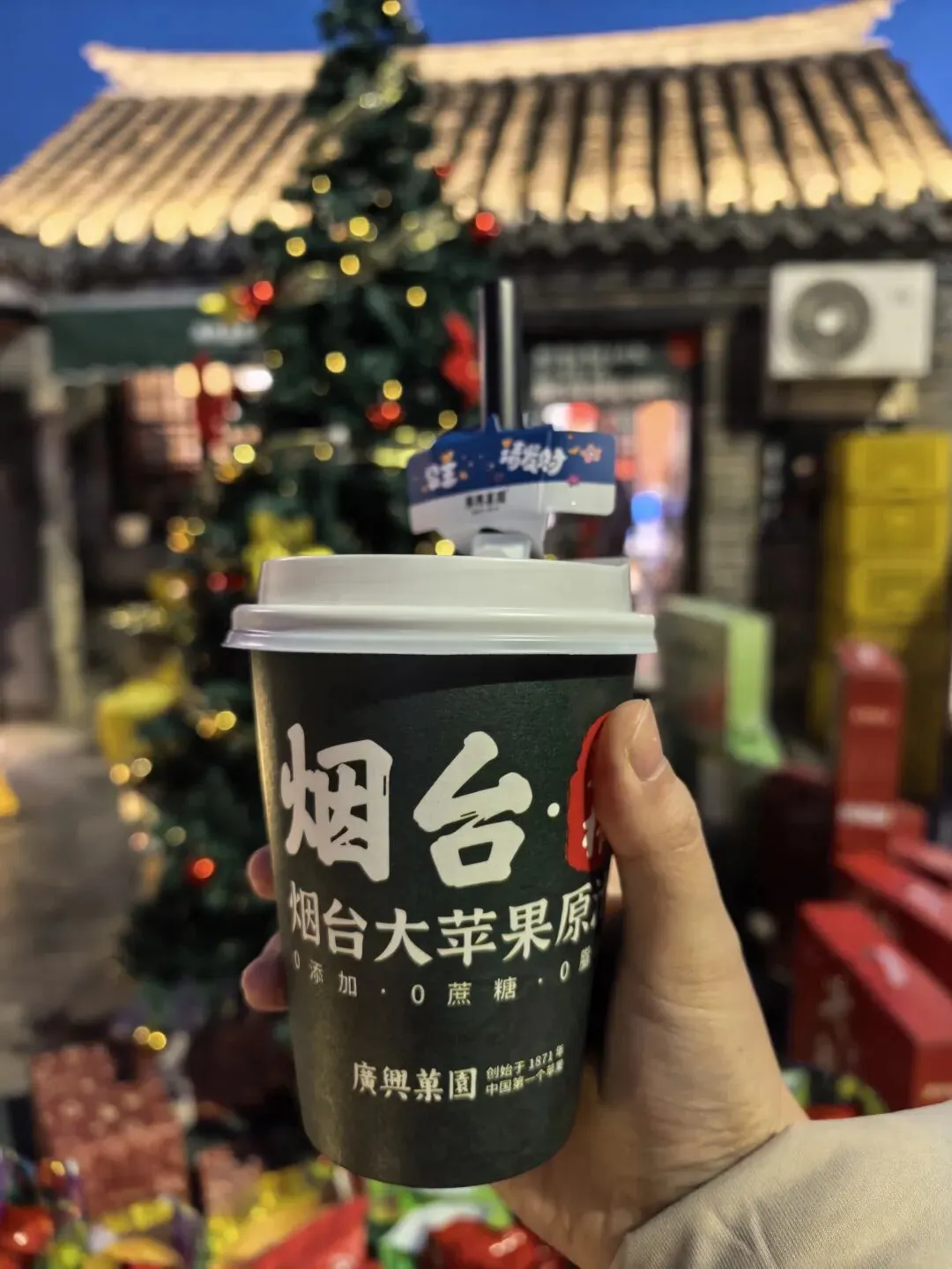 街上有些建筑比较古老,挂着重点文物保护的牌子,街面上小推车很少,整条街看起来就比较干净。我们刚走进去,就有一家店开始吆喝,苹果汁免费送免费送!!吸引了一群小朋友,我们在小朋友后面排队,排到的时候,店员说,免费送的活动现在结束,打卡收藏免费送的活动开始!哈哈哈有点幽默,所以我们是打卡收藏的第一波客人,配料表只有水和浓缩苹果汁,味道还可以,但是无法与广兴果园的鲜榨苹果汁相比。街上有一个小车车是张裕微醺驿站,只要收藏打卡好评就可以领一瓶旅行白兰地,还有1毛钱尝热红酒活动,不过我们对酒不是很感冒,就没有尝了。