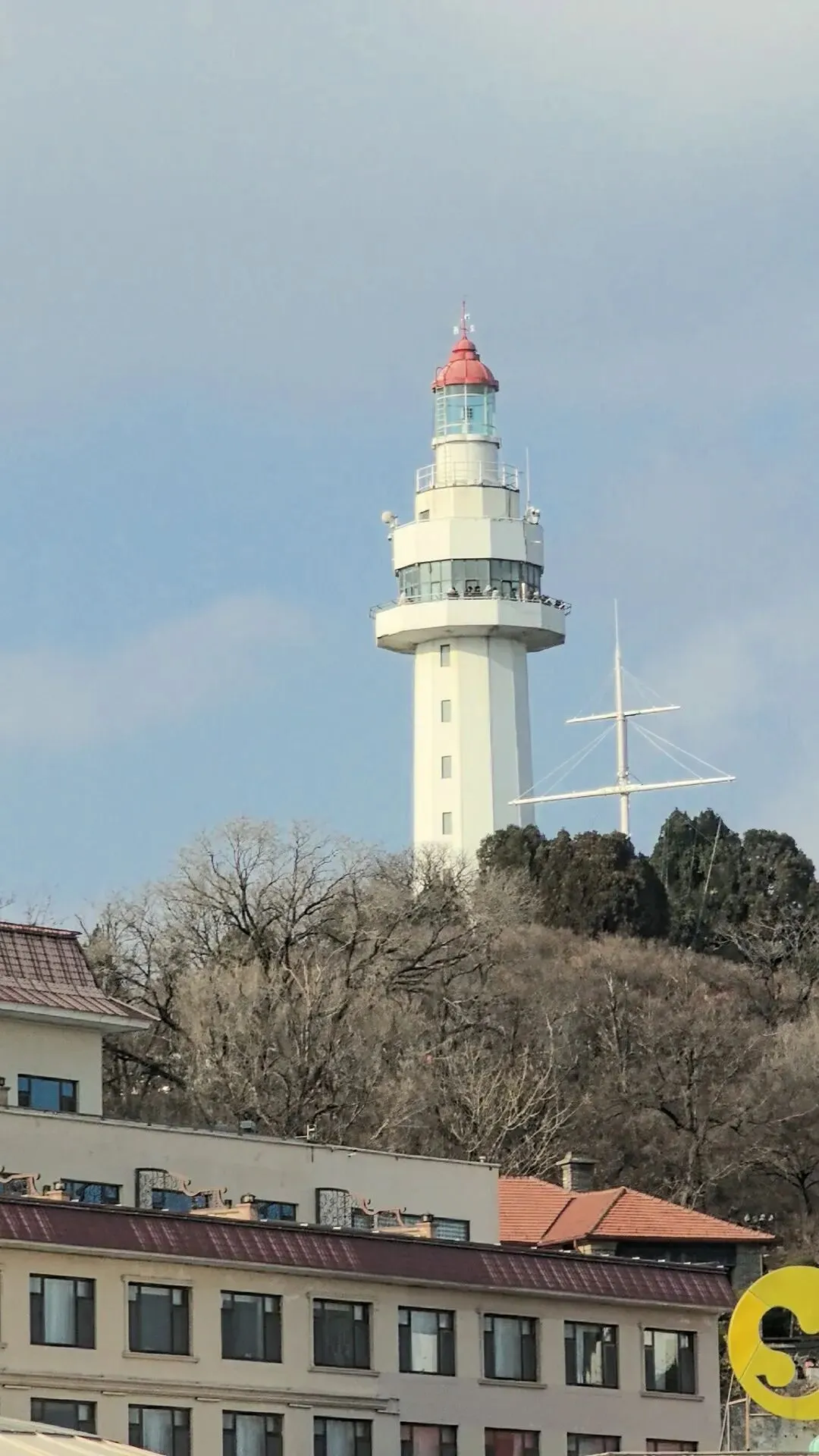 朝阳街走到尽头就是烟台山,白色建筑就是山顶的灯塔,需要买票上,恐高人士就不要上去了。