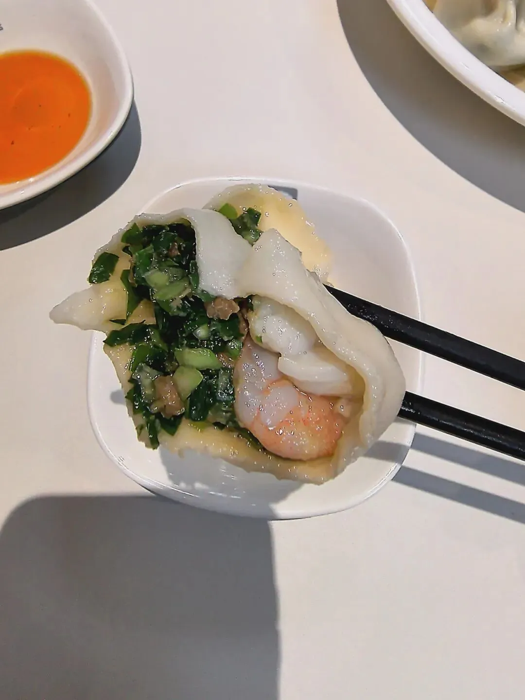 海三鲜,里面是虾仁,扇贝肉,海参和韭菜,一份有18个,分量非常足海胆饺子没有达到我预期,和在大连喜鼎吃的海胆饺子差距很大,肉太多海胆太少。