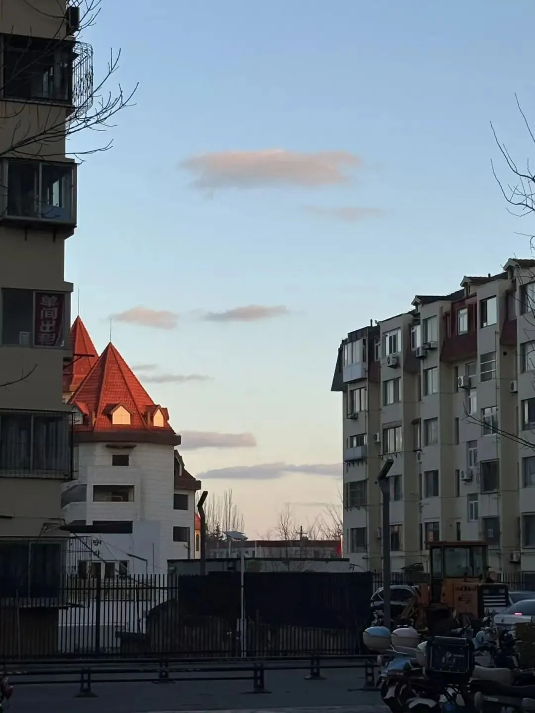 这张照片拍于从某个从单元门出来的下午,那个红砖的房顶真的很好看。2026年1月10日 土曜日 阴天