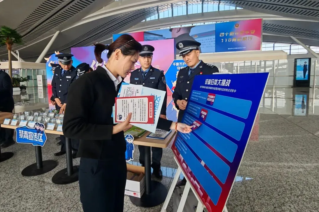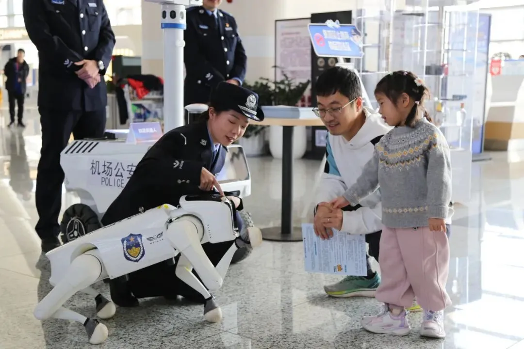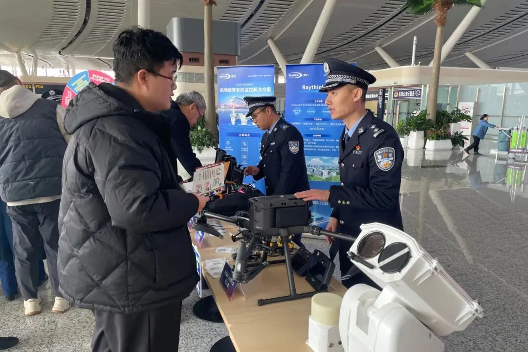 在活动现场,不仅有专业的警用无人机及无人机反制设备、警用机器人(狗)、警用装备器械等科技强警利器、仿真毒品模型,还有好玩又涨知识的小游戏等一系列项目,吸引现场观众参与互动体验,各展区负责民辅警积极与旅客群众进行互动,充分拉近警民距离。