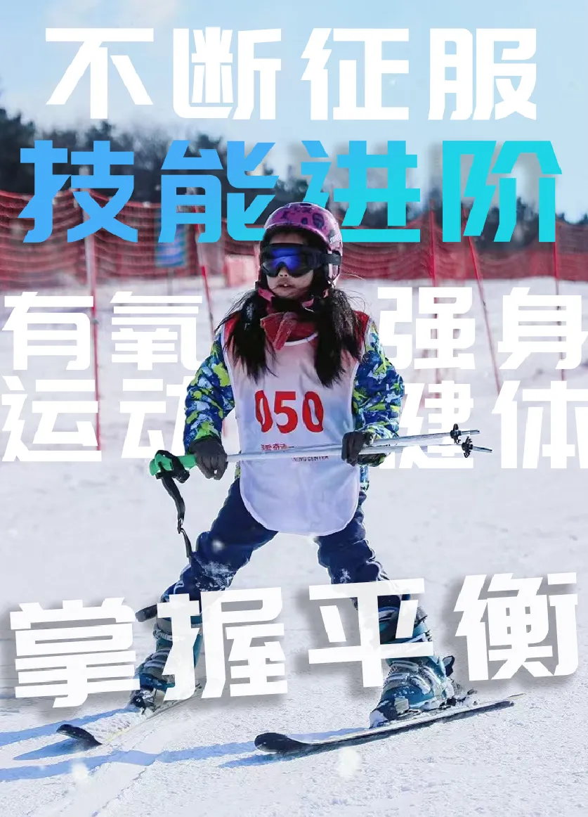 置身热血飞扬的雪场,专业细致的分级教学,稳扎稳打学好滑雪基础,强化身体机能。运动挑战的同时提升抗挫折能力,收获自信心。滑雪结合体适能与营养科学训练,升级自我认知,突破舒适圈。