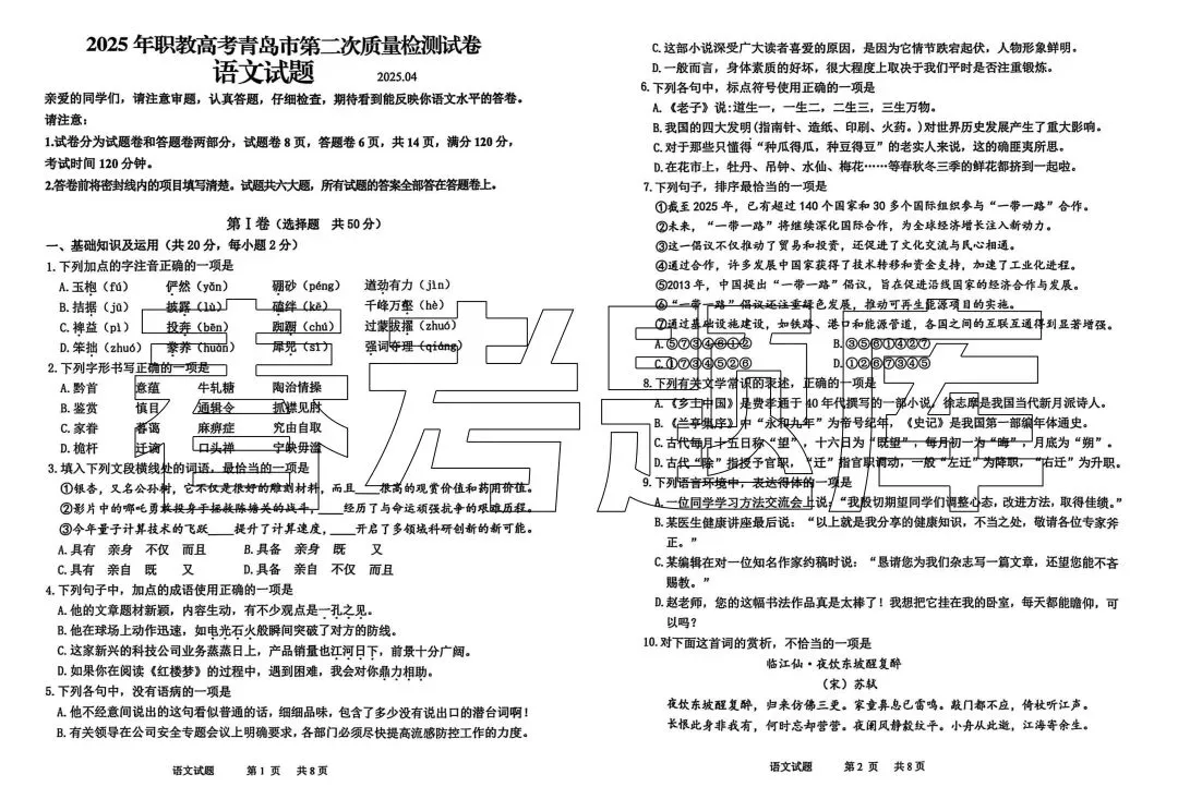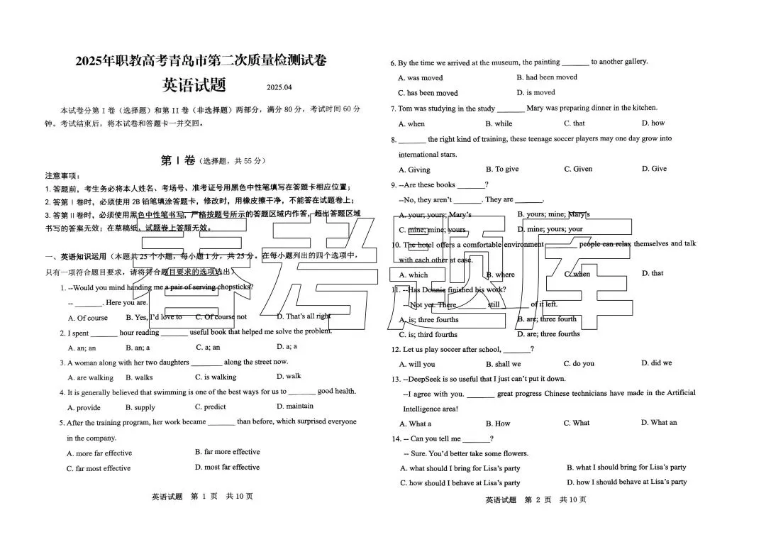 2025年青岛二模