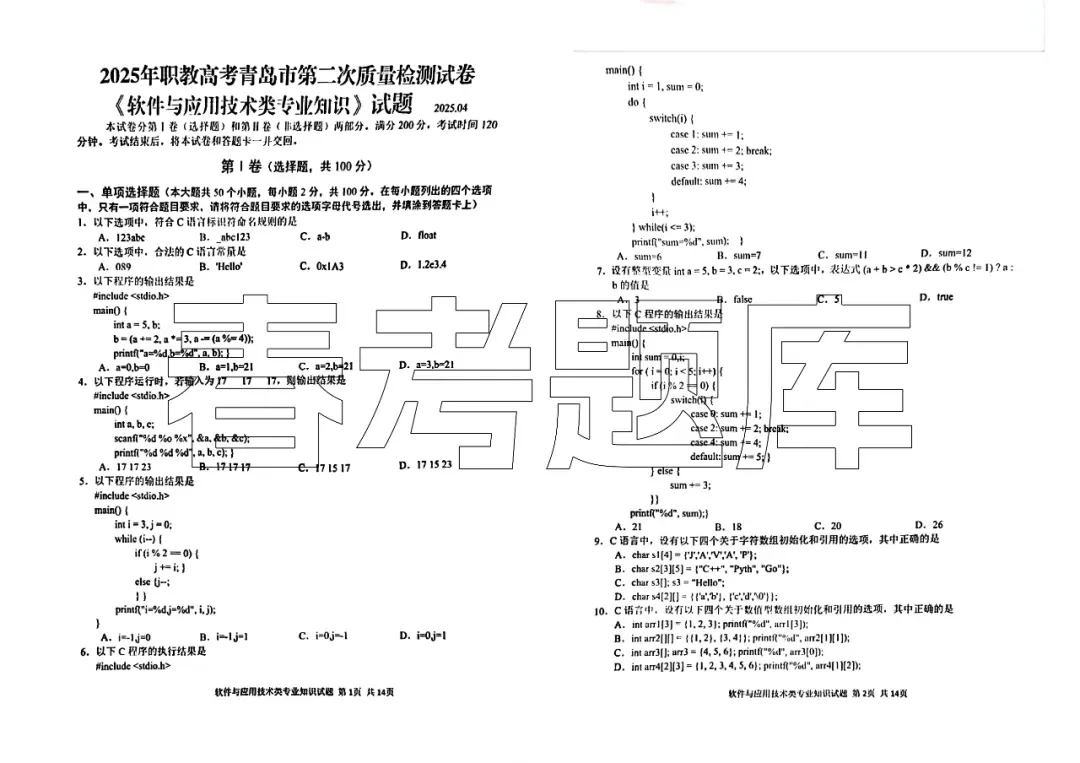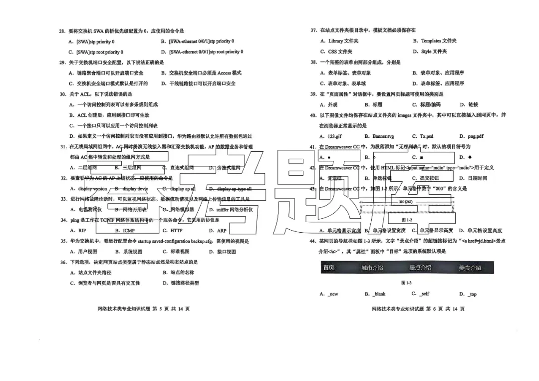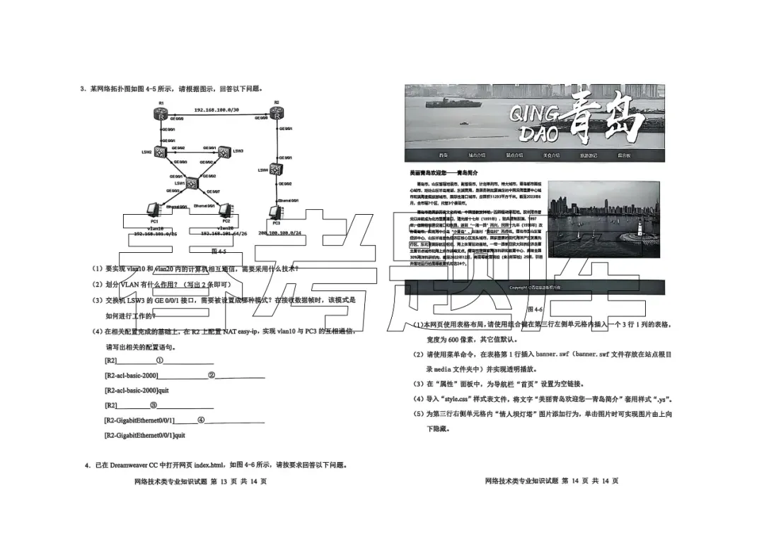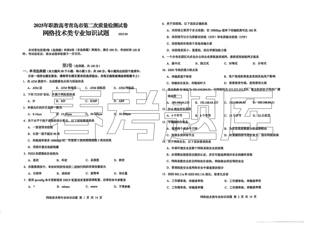 2025青岛第一次质量检测 网络技术试题含答案(2502)