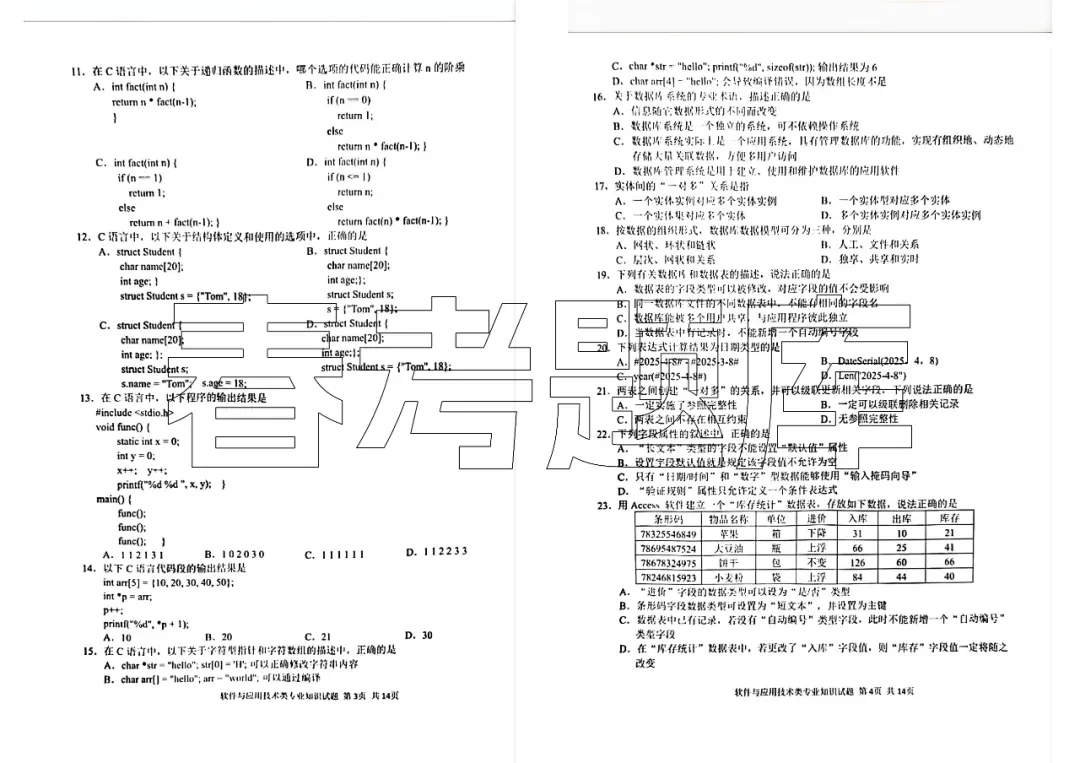 软件与应用技术试题