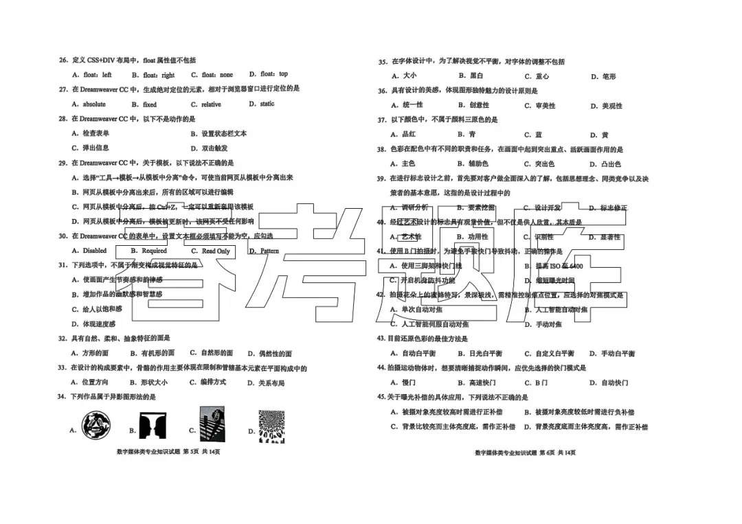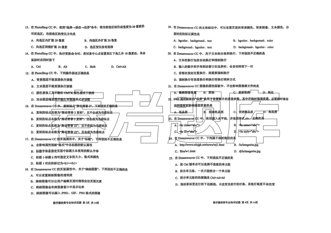 2025青岛第一次质量检测 数字媒体试题含答案(2502)