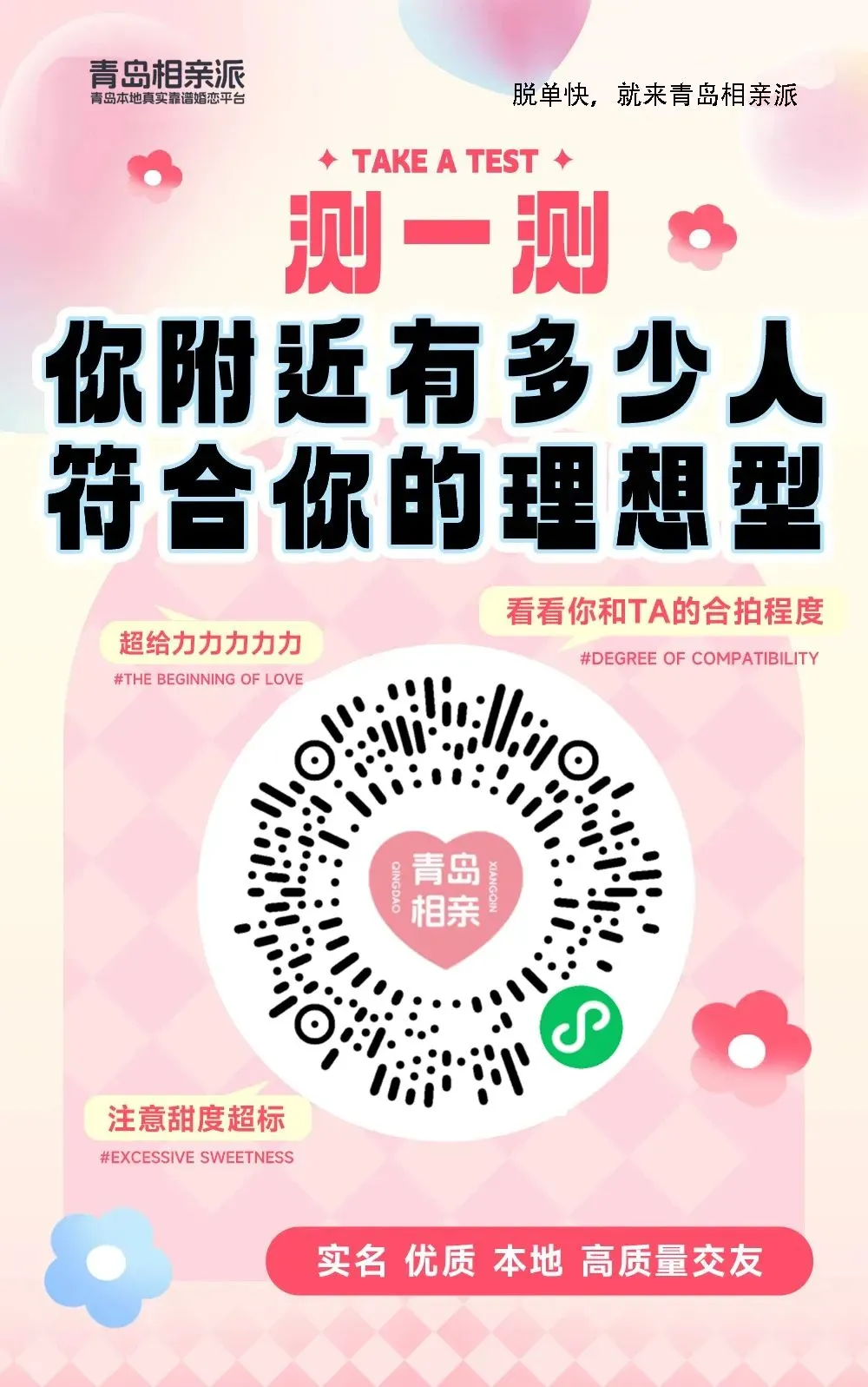 1️⃣希望你在青岛或计划定居青岛,年龄在26-32岁之间4️⃣性格开朗些,能接住我的碎碎念,也愿意和我分享生活点滴如果你希望快速精准脱单,请添加下方红娘二维码,我们会整理资料帮助推荐,如果合适就有机会牵线认识,如果不合适也会给你反馈,我们每天也会在朋友圈发布更多优质单身,屏幕前的小伙伴~冲鸭!