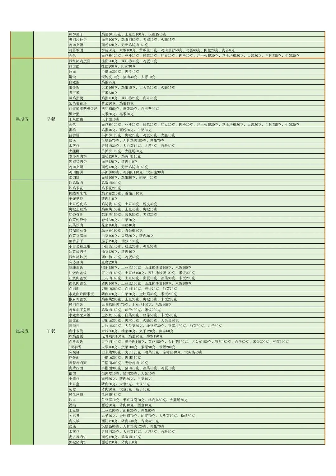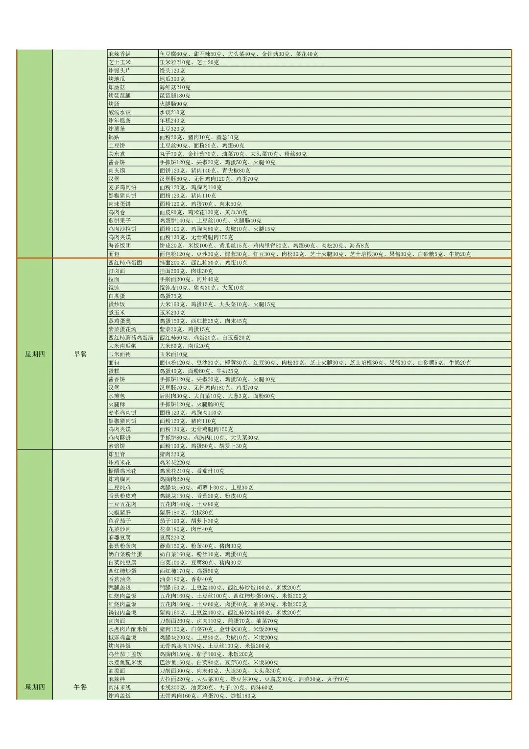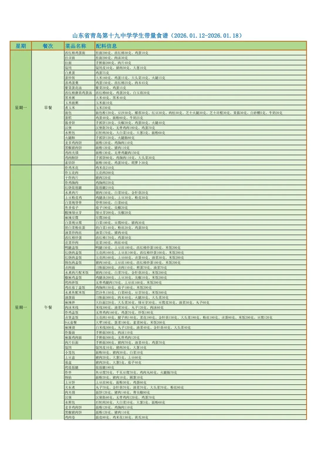 山东省青岛第十九中学学生带量食谱(2026.01.12-01.18)
