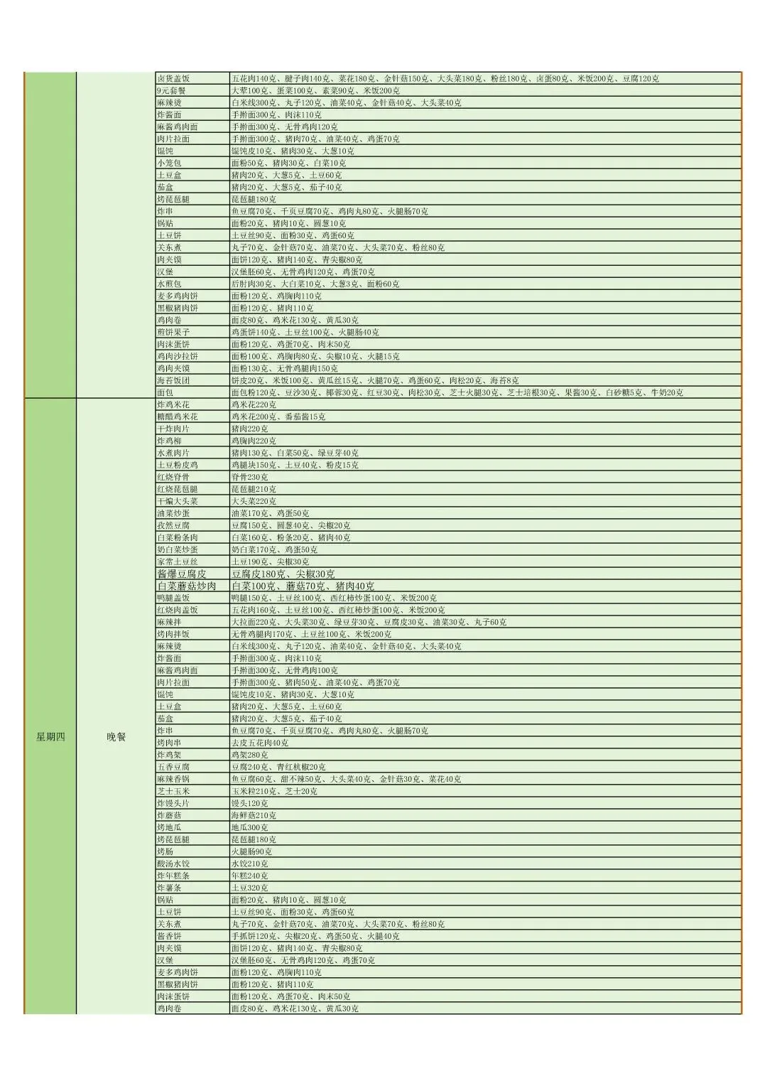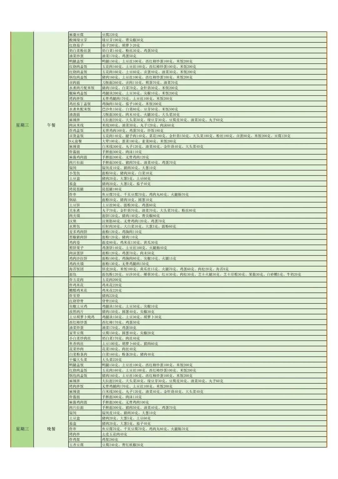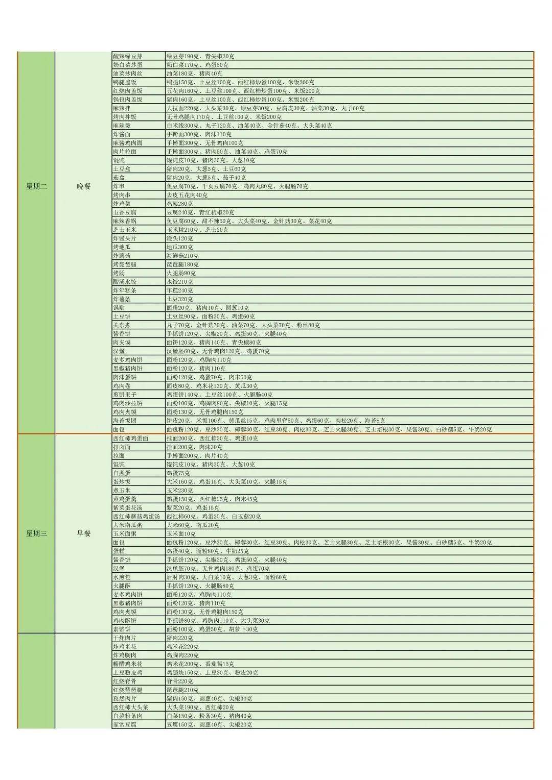 山东省青岛第十九中学学生带量食谱(2026.01.12-01.18)