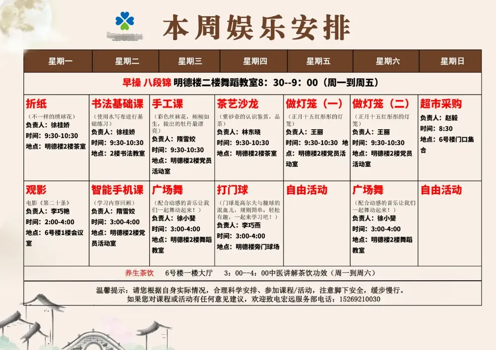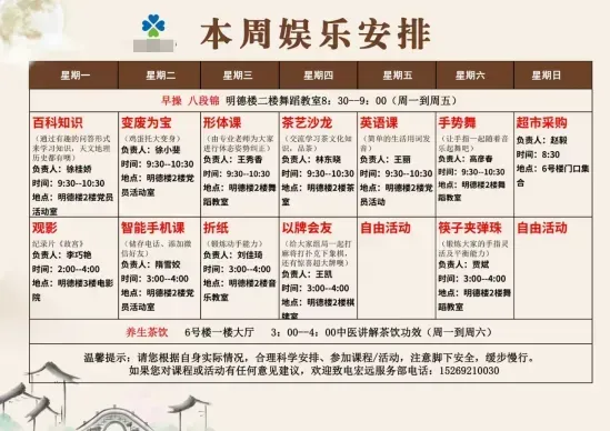 2、自助餐厅:早餐10元/人/餐,中晚餐6菜2汤,入住15晚以上20元/人/餐,入住15晚以下30元/人/餐