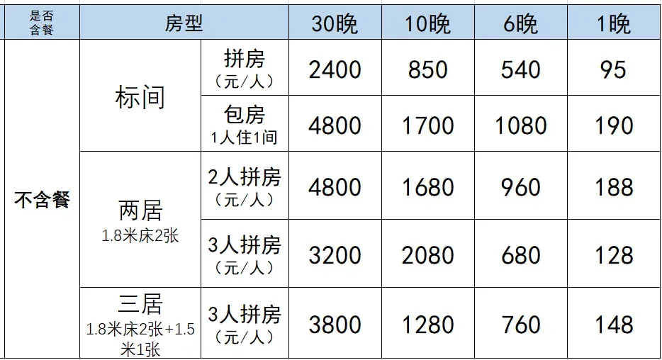 2、单人拼不上房均需按包房价计算;