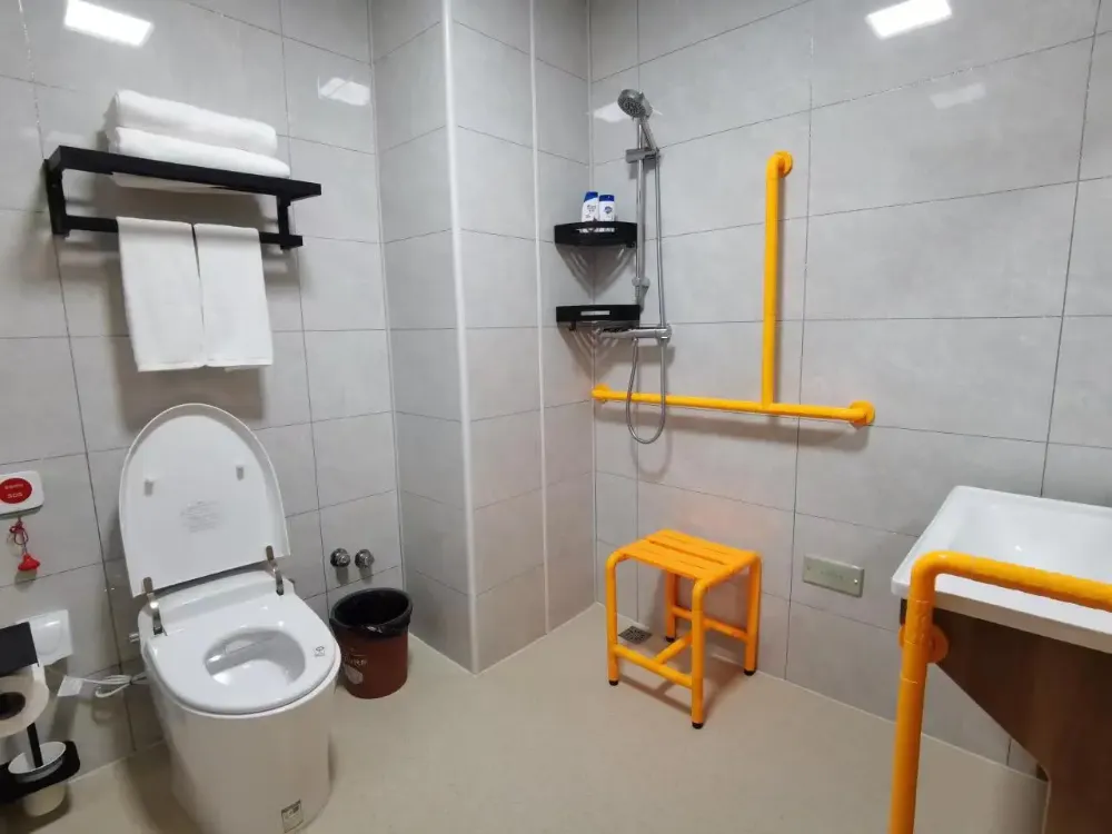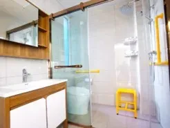 2、适老化细节更贴心:地面防滑地胶、卫生间助浴凳、马桶助力扶手的设计,最大化减少客户的摔跌风险;房间感应式小夜灯设计,晚上如厕减少打扰;多层电梯洋房,超大楼间距采光无影响;