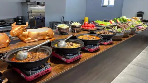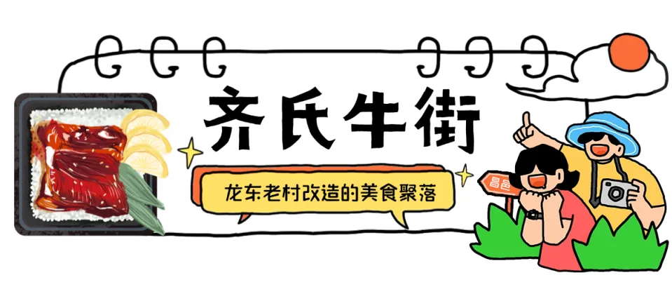 这里是从前的龙东老村改造的美食聚落,齐氏一族自明永乐年间从四川迁徙至此,带来了独特的烹牛秘方。数百年来,这份手艺在村中世代相传,如今终于汇聚成了这条“牛气冲天”的美食街。
