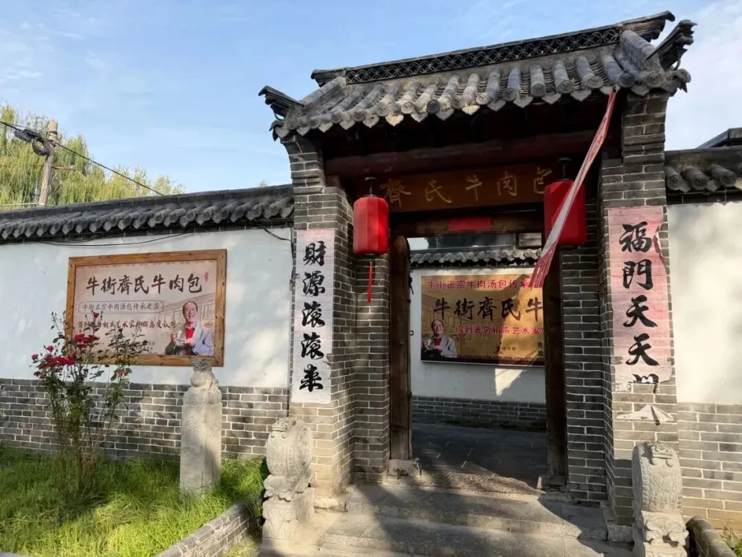 齐氏牛街的魅力,不仅只有“吃”而已。青砖大街两侧,是修旧如旧的灰砖白墙宅院,飞檐青瓦,古色古香。