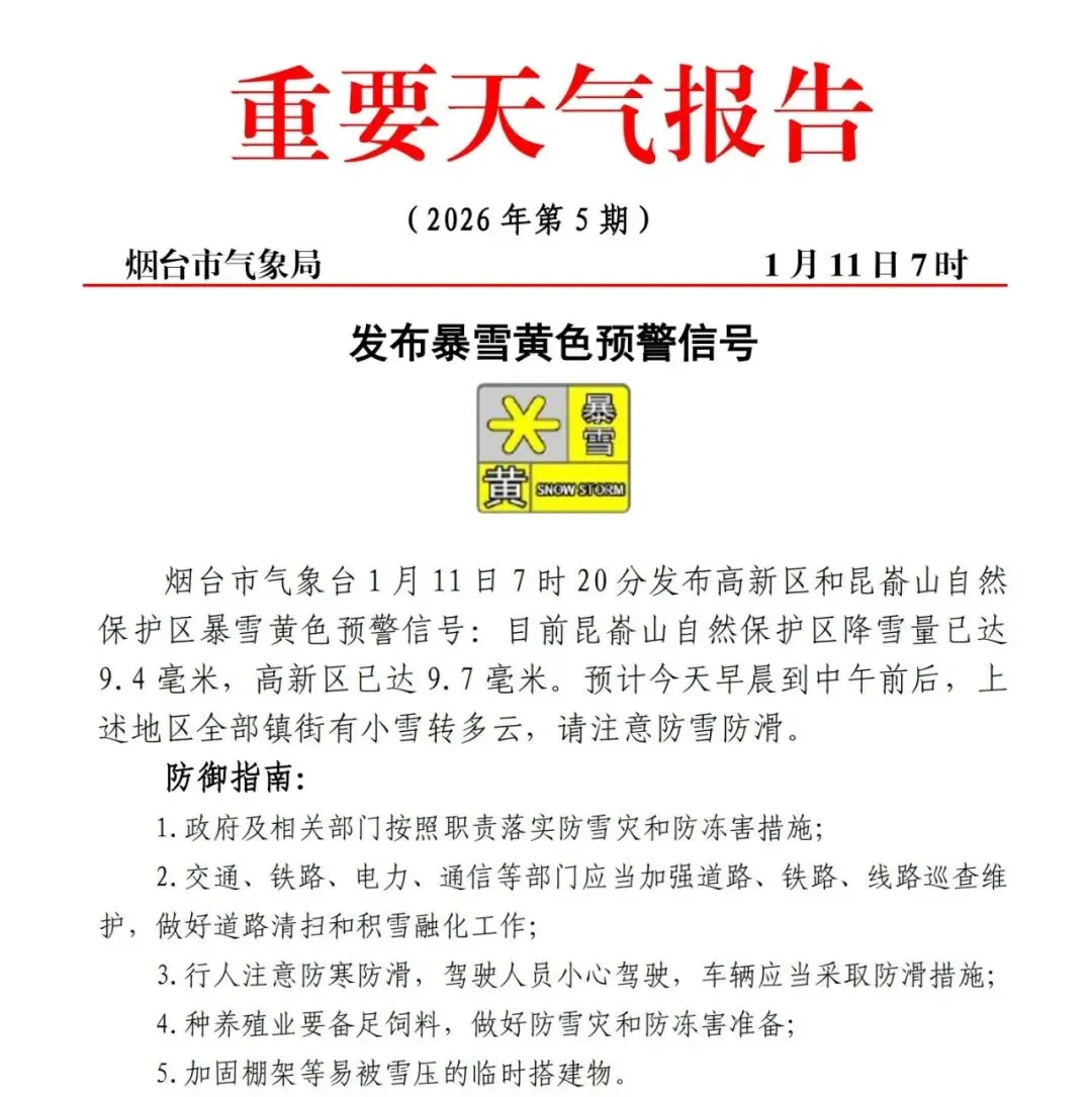 烟台市气象台1月11日7时20分