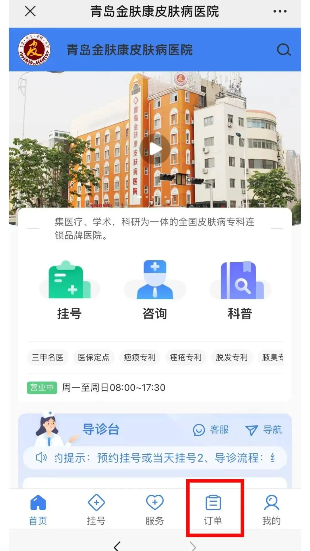 ③预约成功后,点击底部预约挂号,进入首页,订单页面可查看预约信息。