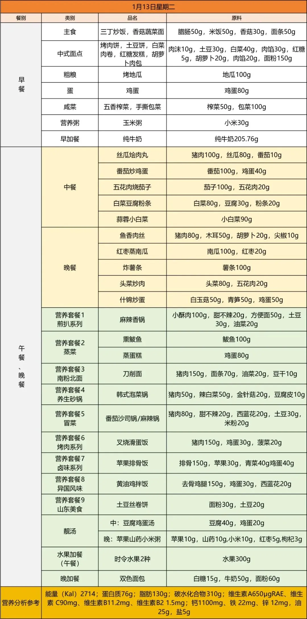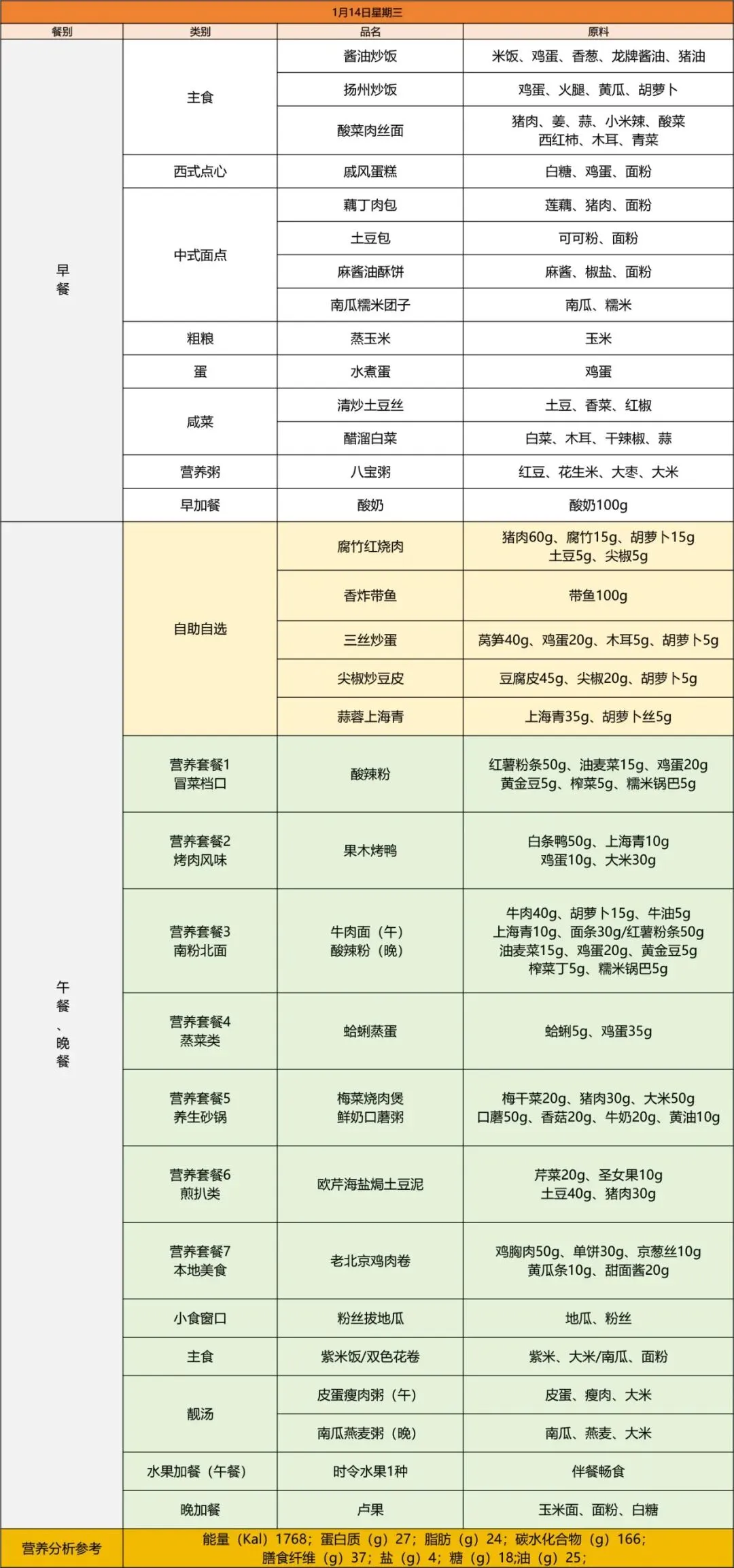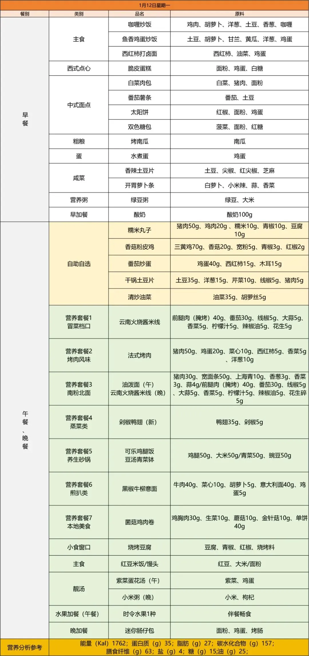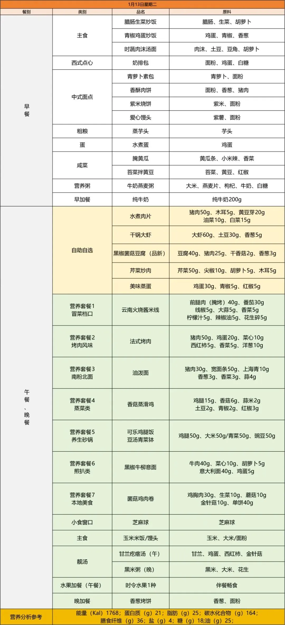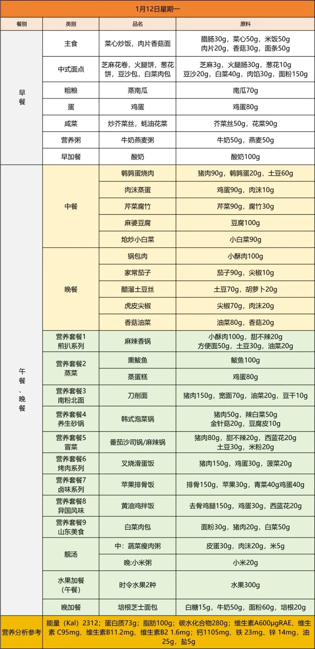 青岛为明学校第二十周营养菜单(2026.1.12-2026.1.18)