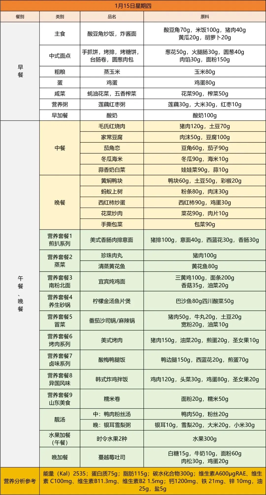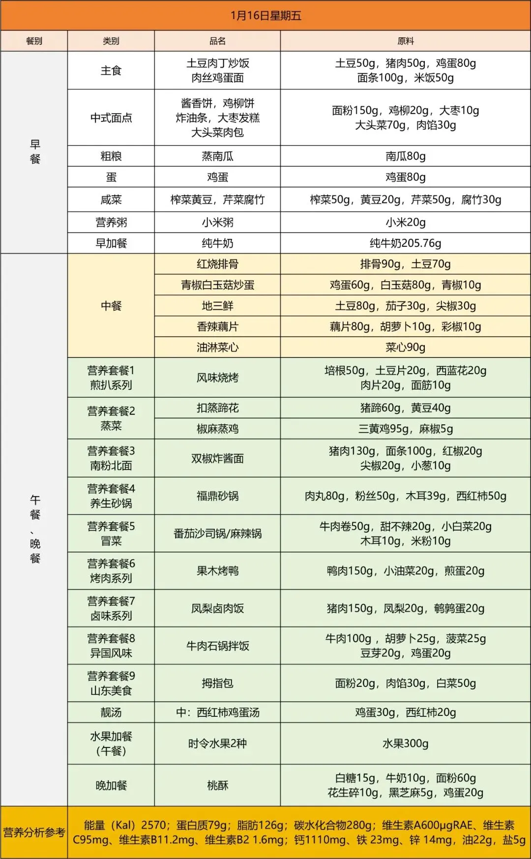 早加餐:纯牛奶中餐:红烧排骨、青椒白玉菇炒蛋、地三鲜、香辣藕片、油淋菜心