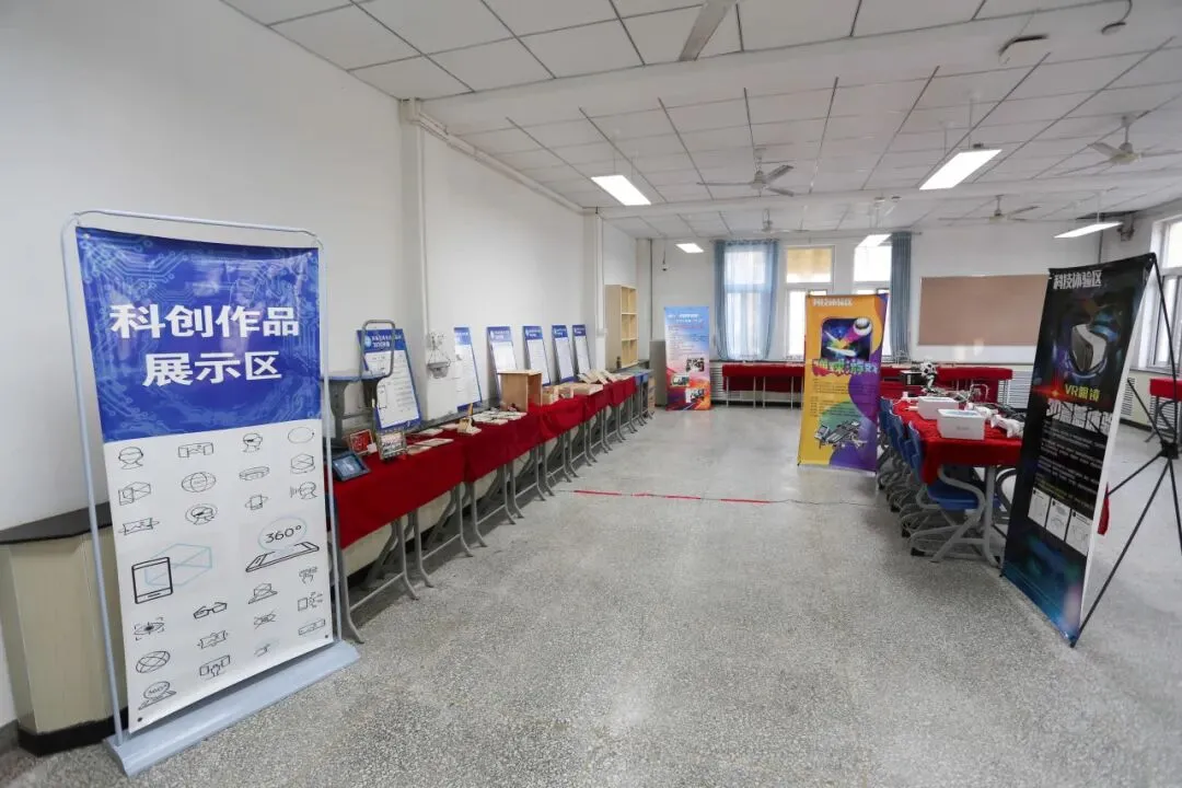 科创作品聚焦新颖性、先进性与实用性,涵盖金工、木工、电子电工、3D打印等类别,兼具美观与实用。展览还设有互动体验区,学生可佩戴VR眼镜感受沉浸式3D视觉效果,或尝试小程序编写,体验创作乐趣。